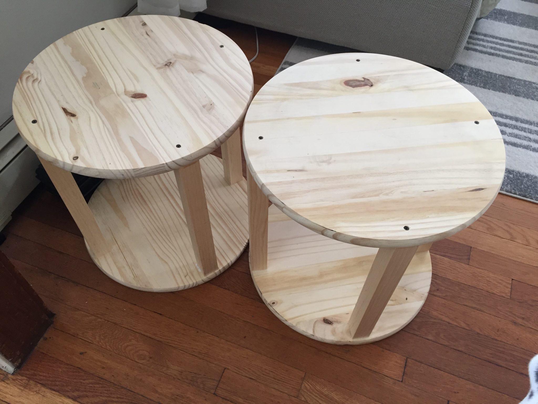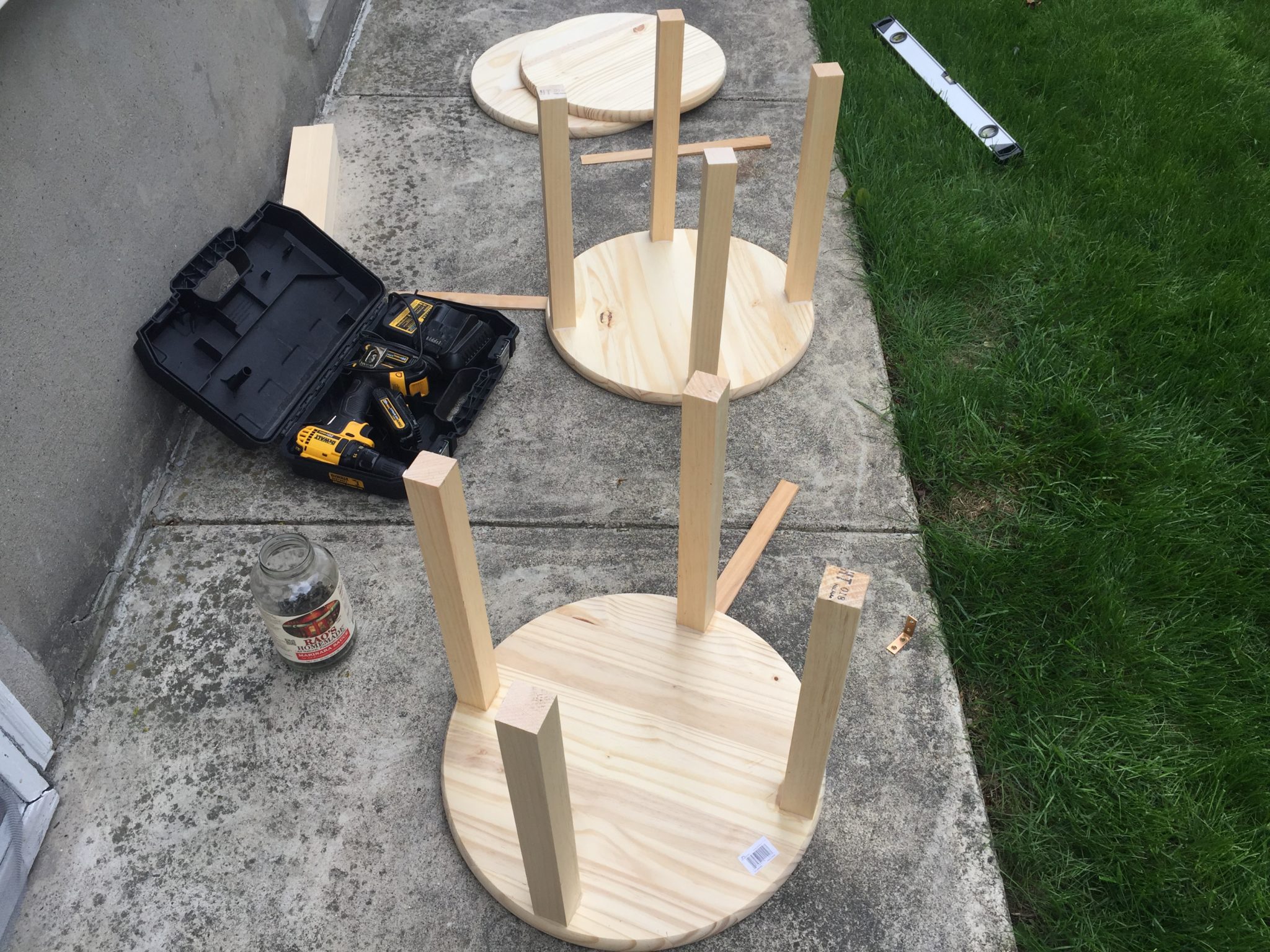 I decided to continue on, thinking to myself that even if they did end up coming out to the same price as buying them, they’d be worth it because I made them (hey, it’s valid!). Everything was going really well with the frame construction (frame for extra stability) and then came time to sew the vinyl cover. I was able to successfully create the bottom portion, but ended up mis-judging how difficult it would be to attach the round top to complete the cover. Trying to do this with thick, stiff material made it even more challenging.